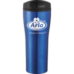 Push-on lid with twist secure closure. Foam insulation. Double-wall construction using stainless steel and plastic liner. Fits most standard car cup holders. 18oz.