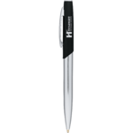Sophisticated silhouette features matte upper barrel with shiny chrome lower barrel and matching chrome accents. Twist action mechanism. Pen includes premium black ink cartridge.