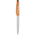 Classic design meets corporate needs in this dual ballpoint stylus pen. Soft rubber stylus tip is integrated into the end cap of the pen for use on touchscreen devices including iPhone, iPad, Blackberry and Android OS tablets or Smartphones. Also ideal for ATM or retail payment pads. Includes premium blue ballpoint ink cartridge.