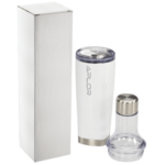 The Duo Copper Vac Bottle & Tumbler 22oz is the most innovative style of the year. Enjoy a beverage by drinking through the tumbler which has a screw-on lid with slide opening, or a bottle with screwed-on top, closed with a stainless steel lid. You decide. Durable, double-wall stainless steel vacuum construction with copper insulation, which allows your beverage to stay cold for 24 hours and hot for at least 8 hours with the easy sipping lid. The construction also prevents condensation on the outside of the tumbler. Wide mouth opening for easy cleaning and filling ice cubes. It is an exclusive item.