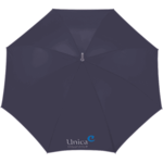 Full-size golf umbrella. Manual opening. Large polyester canopy with matching color case. Sturdy metal shaft with large wood handle. Available for one-day turn with Sureship®.