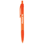 The Charlotte Ballpoint Pen features a translucent barrel with color matching rubber grip. Click action mechanism. Black ink cartridge.