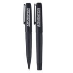 Exclusive The Brass Co® design. This set features gloss black upper barrel with textured bottom barrel and gloss accents. Subtle branding. Includes premium black ink cartridges. Includes 2-piece The Brass Co® gift box.