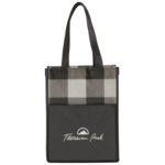 The Buffalo Plaid Mini Gift Tote features an open main compartment and a front slash pocket. This on-trend buffalo plaid tote makes a great gift giving accessory year round.