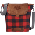 Part of the Field & Co.® Campster Series, inspiration was drawn from retro camping and old school scout looks combined with modern needs. Zippered main compartment with rustic, worn-in look, flap closure features a padded computer pocket that holds most 15" laptops. Fully lined with cotton ticking striped lining. Open front pocket is sized to fit most iPads, tablets, and eReaders in their cases. Cotton webbing carry strap is adjustable and removable with metal claw hardware, allowing for cross-body wear. Main body constructed of 16 oz. cotton with popular buffalo check plaid. Unique Field & Co.® branding details like exterior cotton patch and interior stamp featuring the inspiration behind the collection.