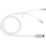 The Zipper 3-in-1 Charging Cable comes with a USB A tip on one side, the other side includes a USB Type C tip and a 2-in-1 dual compatible tip for both Apple® iOS and Android devices with 1A current. Not compatible with iPad Pro. The two cords can be zippered together for easy organization. Cable length 47".