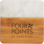 This chic four piece coaster set is crafted from marble and bamboo. The coasters are square with rounded corners. These on trend coasters are perfect for the home or office. Decoration on all four coasters. Due to the nature of the bamboo material, variations in laser imprinting quality may occur. Marble may also have different patterns due to the nature of he material.