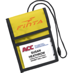 The Deluxe I.D. Badge Holder features a hook and loop closure an inside zippered pocket and one open pocket. Great for tradeshows and employee badges it also includes pen sleeves an open pocket on the back and an adjustable breakaway lanyard. Window size: 3" H x 4-3/8" W. Pens are not included.