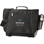 Large zippered main compartments can hold up to 15" laptop, accessories and documents. Zippered rear pocket for quick-access storage. Side mesh pocket fits beverage bottles. Additional storage on flap of zippered pocket. Business organizer hides securely under flap. Detachable, adjustable shoulder strap.
