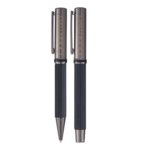 Exclusive The Brass Co® design. This set includes shiny gunmetal UV upper barrels with octahedron bottom barrels. Subtle The Brass Co® branding on pen clip and grip. Includes premium black German ink cartridges. Includes 2-piece The Brass Co® gift box.