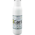 The Marka Copper Vacuum Insulated Bottle features durable, double-wall stainless steel vacuum construction with copper insulation, which allows your beverage to stay cold for 48 hours and hot for at least 12 hours. The construction also prevents condensation on the outside of the bottle. Comes complete with the on-trend, durable, smooth-touching powder coated appearance and a screw-on, spill resistant lid and a durable, zinc-alloy hand loop. Fits most standard car cup holders. Leed's exclusive. 20oz. Green Terrazo Pattern