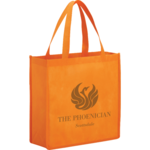The Main Street Non-Woven Shopper Tote has a large open main compartment with double 18 inch reinforced handles. It's also reusable and a great alternative to plastic bags. Gusset & Handle Decorating does not qualify for one day turn. Polypropylene is recyclable with #5 plastics please check with your local municipalities for specific rules and regulations.