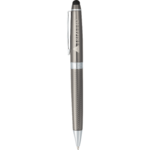 Exclusive design features rubberized capacitive touch stylus tip that is ideal for touch screens such as iPhones and iPads as well as everyday uses such as touchscreen payment pads used in grocery stores, gas stations, department stores and ATMs. Detailing on bottom barrel and clip complement the Cutter & Buck® Pacific Series line exclusive to Leed's. Pen also includes premium black ballpoint ink cartridge.