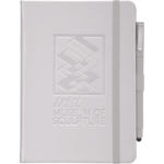 Set includes (2800-29) Vienna Hard Bound JournalBook and (6620-33) Ambassador Square Ballpoint Stylus. Soft touch, hard cover bound journal with built in elastic closure. Color matching elastic pen loop and ribbon page marker. Includes 72 sheets of white lined paper.